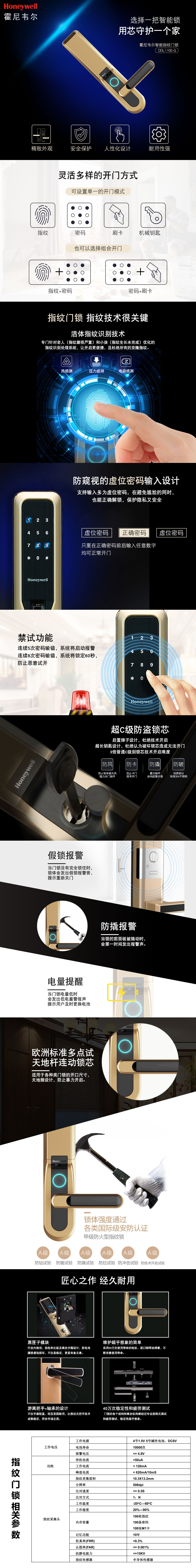霍尼韋爾智能門鎖智能液晶屏設(shè)計,指紋/ 刷卡/ 密碼/機械鑰匙多種開鎖模式,操作簡單快捷,安全性能更高。...